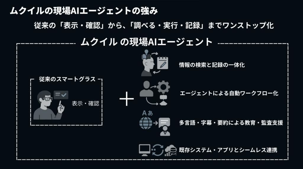 株式会社ムクイルは、スマートグラスAIソリューションに生成AIを統合した新機能『現場AIエージェント』をリリースしました。