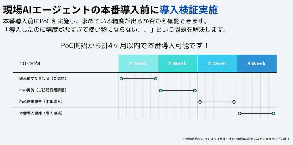 『現場AIエージェント』は、従来のスマートグラスに搭載されていた骨格追跡や物体検知といった機能に、生成AIを統合することで進化した新しいソリューションです。RAGによる情報検索で社内SOPやマニュアルを即時に提示できるだけでなく、エージェントによる自動実行機能によって点検や記録などの一連の作業を自動化します。これにより、従来は「表示・確認」にとどまっていたスマートグラスが、調べる・実行する・記録するまでをハンズフリーで完結できる現場支援ツールへと進化しました。