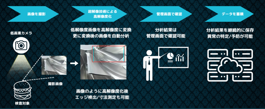 検査時にカメラで撮影したデータを超解像技術により自動で高解像度化。